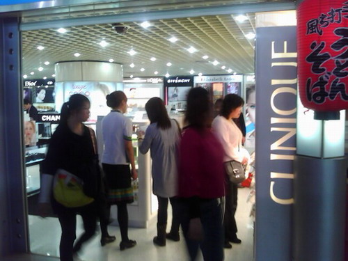 走進(jìn)大丸百貨偏門是一個襪子專賣區(qū),圍著挑選的基本都是中、韓婦女;往里前行,閃亮的珠寶專柜晃花了眼,可能是我孤陋寡聞,幾個LOGO好陌生,猜測是日本本土品牌;