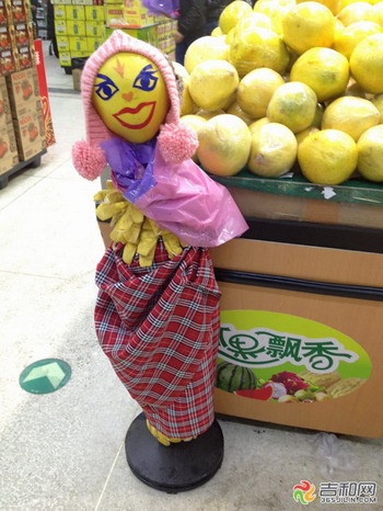 長春一超市驚現(xiàn)水果怪 8個柚子做柚子超人
