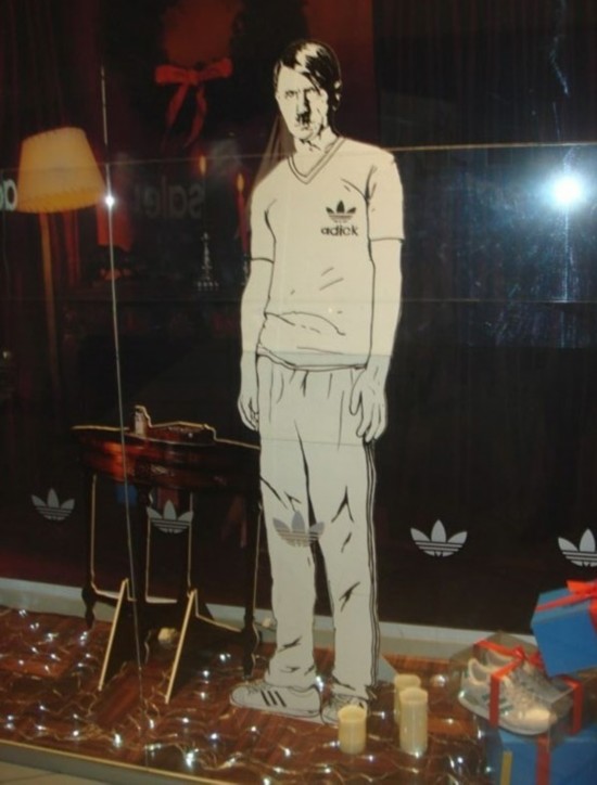 俄阿迪達(dá)斯服裝店豎希特勒人形廣告攬客戶 據(jù)俄羅斯“RIDUS”新聞網(wǎng)1月21日消息,俄羅斯葉卡捷琳堡的一家阿迪達(dá)斯服裝店櫥窗,竟然打出法西斯頭目希特勒的人形牌做廣告以招攬客人,這令當(dāng)?shù)厥忻袷植唤狻?BR>