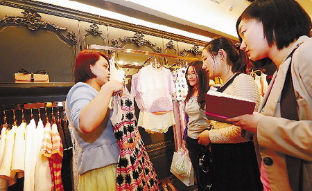 歐時力女裝的店長說,別看周末人氣旺,平時的客流對銷售也很重要,他們店平時顧客的下單率在60%以上,一般客人都是2件、3件地買走。記者觀察了一下,大約15分鐘時間里,有七八位客人進店,其中有2位客人試穿了衣服,其中一位試穿了2套以上,最終有一位客人買了單。