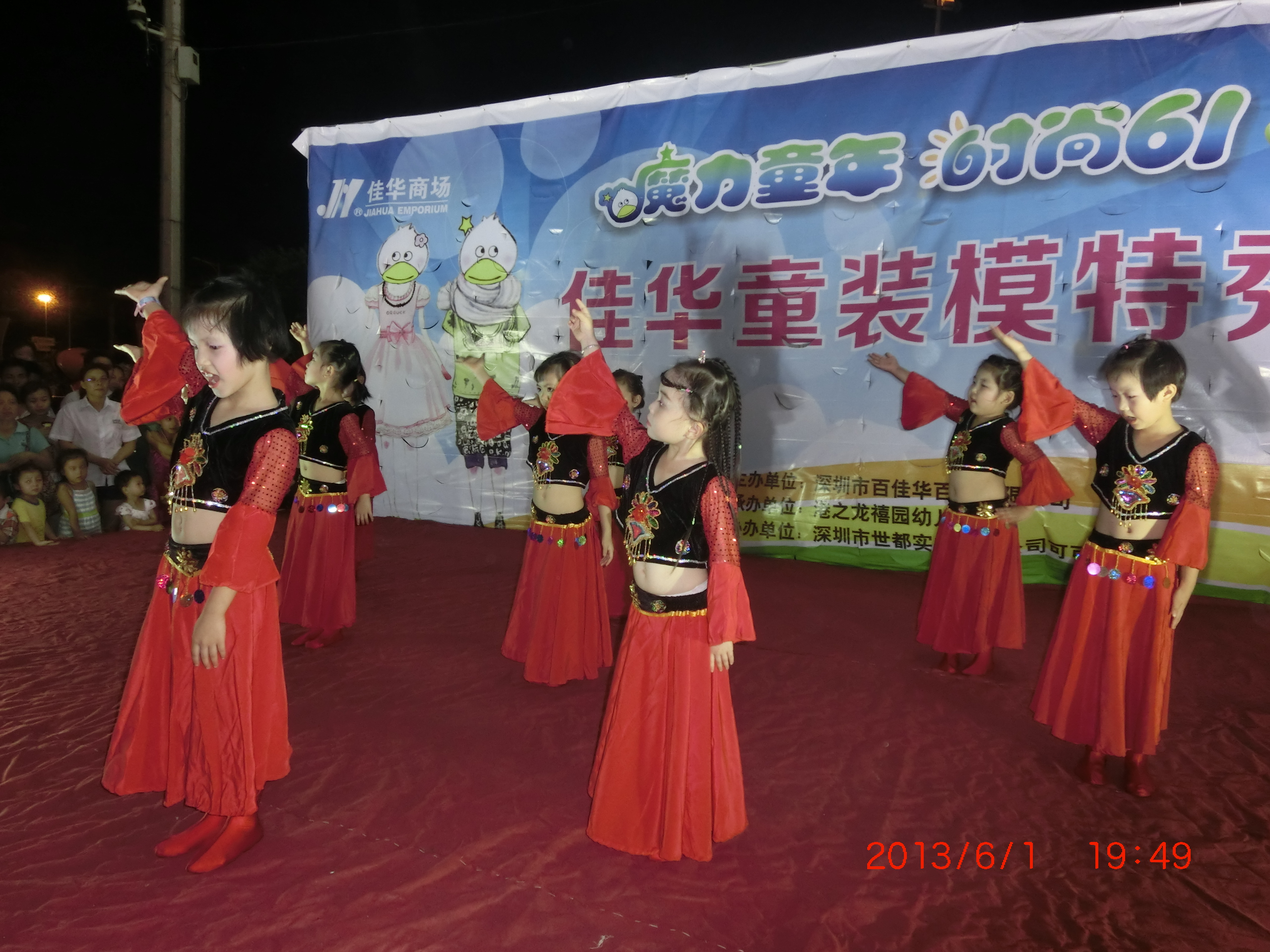 6月1日晚,由沙井佳華商場主辦,禧園幼兒園小朋友參加的佳華童裝模特秀在一首感恩的心的歌曲拉開的了帷幕,小朋友還表演了西域的民族歌舞,有各童裝品牌的時裝秀,特別是小朋友現(xiàn)場報名參加時裝秀,使晚會達(dá)到了高潮,很多小朋友的家長帶著相機(jī)留下了小朋友的幸福時刻。