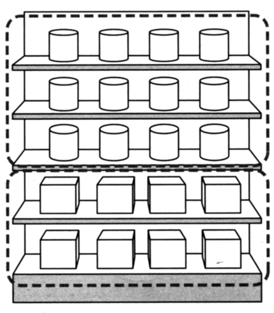 在超市等商店,有時會在商品貨架上出現(xiàn)銷售額構(gòu)成比差。此時,L字型陳列架最下層伸展出的部分,就會成為陳列A級別高銷售額商品的黃金區(qū)域。因此要使該處成為橫向陳列中注目率最高的地方。