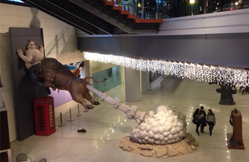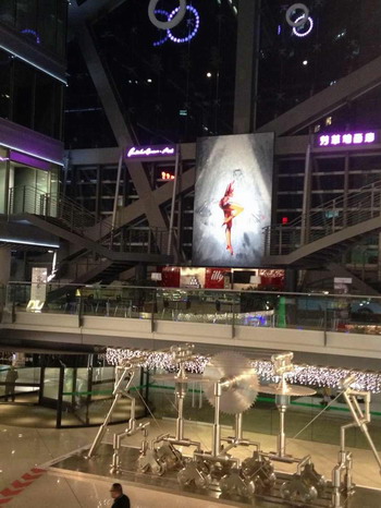 聯(lián)商網特約評論:北京僑福芳草地是我見過的購物中心里最漂亮的。 。▓D為北京僑福芳草地室內) 。ū本﹥S福芳草地大門入口旋轉門內“豬小姐”) 其藝術陳列“被鋸之鋸”,呈現(xiàn)三個鋸齒互相咬合,寓意事物間互相影響,傷害與被傷害;“開弓無箭”是空靈的;中庭的圣誕陳列是按照玩具水晶球放大幾百倍的;懸空的長橋、鋼索像電影《魔戒》城下;商場大門入口旋轉門內“豬小姐”熱情爛漫;美食區(qū)旁的斗牛藝術陳列令人震撼。