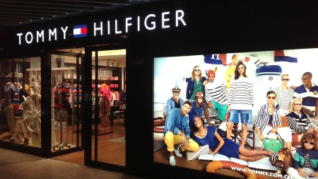 接下來(lái),讓我們來(lái)看幾個(gè)實(shí)例。首先,我們很推薦GAP 商店標(biāo)識(shí)的設(shè)計(jì)(照片實(shí)景拍攝于芳草地購(gòu)物中心)。他們將品牌標(biāo)志置于商店入口上方及兩側(cè),使顧客無(wú)法不注意到醒目的品牌標(biāo)志。而標(biāo)識(shí)本身使用清晰,簡(jiǎn)潔,淺色置于深色背景之上的高對(duì)比度的設(shè)計(jì)造型,這使得標(biāo)識(shí)非常容易被關(guān)注到,而標(biāo)識(shí)中間放大的立體字母也確保了名稱文字能被顧客從很遠(yuǎn)的位置及不同的角度輕易辨認(rèn)出。