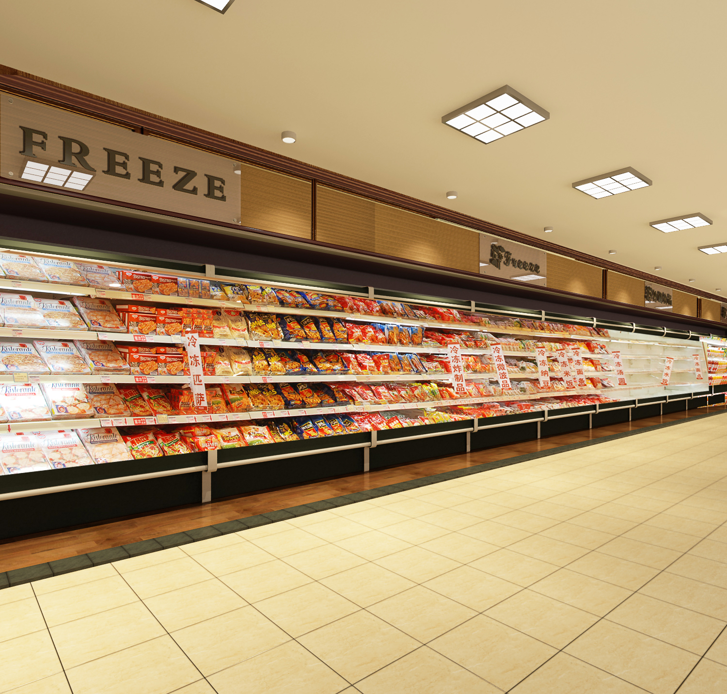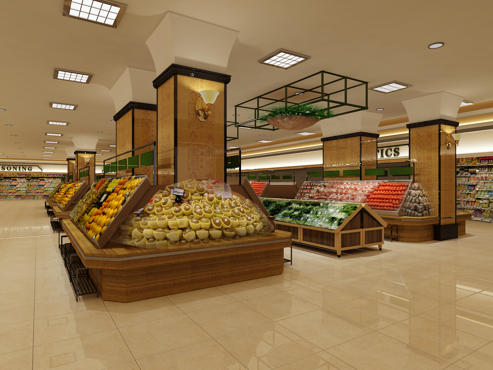 設計方案使用了美式超市的一些元素,比如柱頭、線條,通過整體風格的把握,再融合國內超市經營特點,創(chuàng)造了一個大氣,舒適、別致的購物空間!