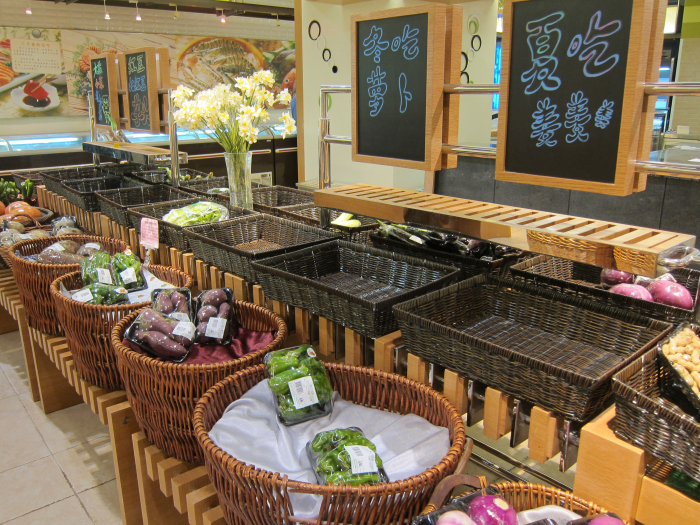 小黑板,蔬果區(qū)的上方,有介紹商品的食用方法還有類似這樣的,個(gè)人很喜歡這個(gè)字體,很可愛很年輕