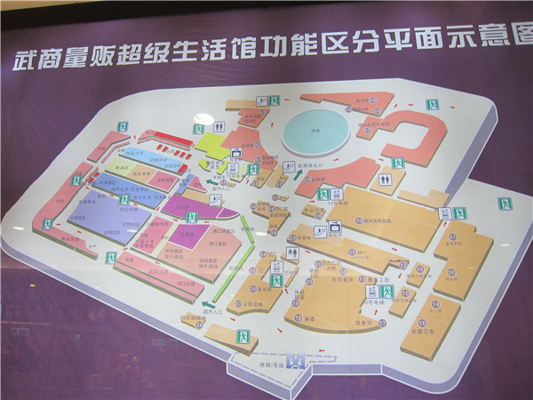 武商量販超級(jí)生活館在武漢國際廣場地下一樓,由精品超市和美食廣場組成 武商量販超級(jí)生活館入口,長形電梯,真的很長很長,兩邊墻壁上掛有商品圖 超市入口和收銀臺(tái) 小推車很有質(zhì)感