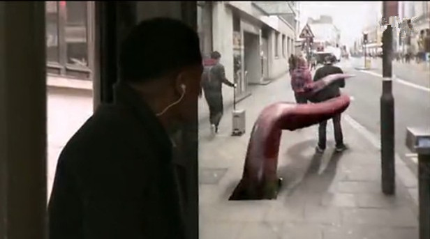 5.百事可樂公交站臺惡作劇廣告:下水道怪物、飛碟、隕石……有什么不可能(科技是可以這樣玩的