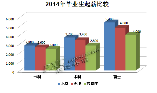 從畢業(yè)生起薪的角度來說,京津的優(yōu)勢也比較明顯,雖然京津地區(qū)有為數(shù)眾多的大學(xué)及中高等職業(yè)院校資源,但是找到有潛力勝任工作的畢業(yè)生依然不是很容易的事情,所以兩地畢業(yè)生起薪連年漲幅,已經(jīng)超過了一部分企業(yè)工作多年的老員工的薪水,新老員工薪酬內(nèi)部矛盾比比皆是。而以石家莊為代表的河北各市,畢業(yè)生起薪不到北京的八成,而這也是2012-2013年畢業(yè)生起薪連續(xù)增長幅度超過10%之后的數(shù)字。