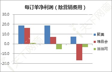 聚美除倉儲以外的三項費用均低于唯品會和當當網(wǎng)。以電商企業(yè)最主要的成本項物流費用來說,聚美每單總物流費用為11.8元,而唯品會和當當網(wǎng)分別為24.7元和11.4元。