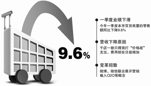 面對困境,百貨公司也在開始轉(zhuǎn)型,如與微博、微信聯(lián)合展開營銷,植入o2o等概念等。業(yè)內(nèi)人士表示,新模式還處于培育期,在消費(fèi)持續(xù)不景氣的情況下,相信行業(yè)“回暖”仍需一段時(shí)間。