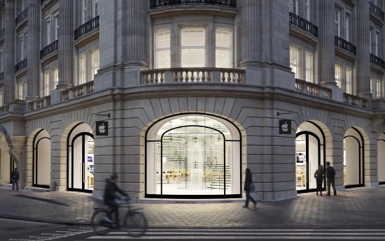于2010年開幕的倫敦蘋果商店位于攝政街(Regent Street),店內(nèi)總面積達到了2萬8千平方英尺,是世界上最大的蘋果零售店之一,并雇傭了超過300名員工。