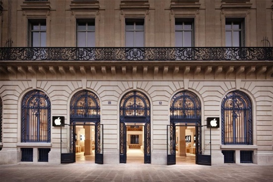 2010年,蘋果在法國巴黎知名的Opéra廣場開了一家新零售店,這家門店的前身是一家擁有134年歷史的銀行。在裝修時,蘋果盡可能的保留了這座由大理石和石灰石構(gòu)成的建筑原貌,甚至還不惜花費大量時間擦洗舊銀行留下的煙熏痕跡。