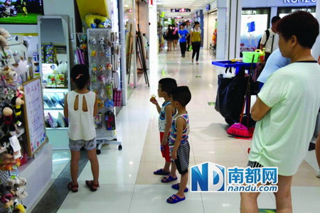 小朋友在商場的玩具店門前看動(dòng)畫片!