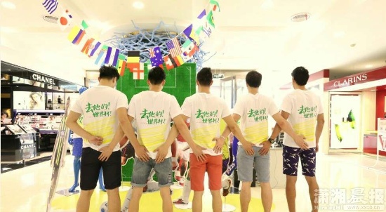 2014巴西世界杯來襲,星城各大商家爭相打起“足球牌”,但是長沙王府井百貨卻反其道而行之,特立獨(dú)行地打出了“去他的世界杯”的口號,組男神隊服務(wù)女性消費(fèi)者,成功吸睛。