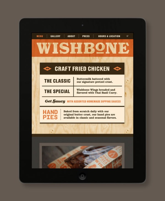 Tag Collective是紐約一家設(shè)計(jì)公司,相信好的設(shè)計(jì)不僅僅是一個(gè)漂亮的臉蛋,信任客戶并提供深思熟慮的設(shè)計(jì)解決方案,幫助客戶實(shí)現(xiàn)他們的潛能。Wishbone是費(fèi)城一個(gè)炸雞餐廳。一切從廚房出來的美食都是有點(diǎn)油膩的,就像任何一塊炸好的炸雞。所以這也是一個(gè)美味與油膩的設(shè)計(jì)。