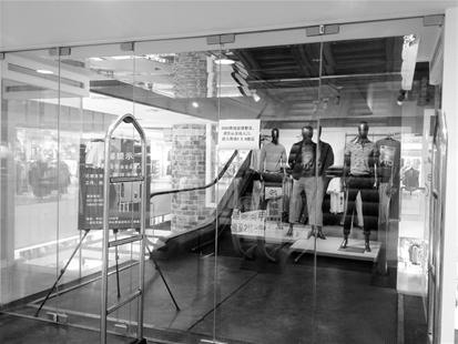 快時(shí)尚品牌C&A店面,跨商場兩個(gè)樓層,進(jìn)去購物的顧客不多。與C&A店面相接的中庭電梯處,突兀地安裝了一道玻璃門,已被鎖死,上面貼有告示“SOGO商場裝修整改,請您從其他入口進(jìn)入商場4、5、6樓層”。透過玻璃門,可以看到里面空蕩蕩的。