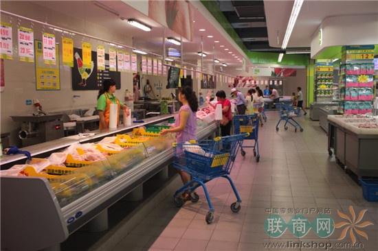 賣場位于政治中心,附近是高檔小區(qū),因此賣場的消費(fèi)客群為中高檔顧客,經(jīng)理王偉杰告訴聯(lián)商網(wǎng)記者,整個(gè)賣場的SKU有2.5萬多種,由于商品齊全,賣場面積大、設(shè)備新,目前賣場商圈的覆蓋面已到5公里之外,很多顧客都開車過來消費(fèi)。平時(shí)客單價(jià)在80元左右,晚上銷售占比最大,約為45%,顧客一般為30-45歲的年輕群體。