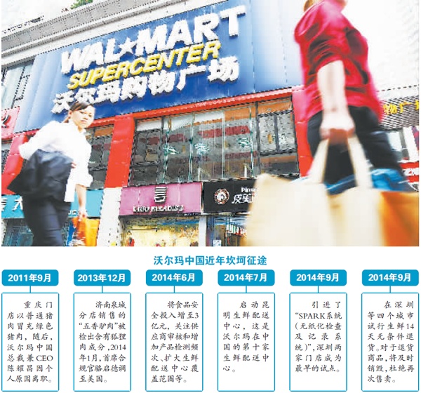 全球零售巨頭沃爾瑪在中國食品安全方面的措施正在逐步落地。2011年綠色豬肉造假和2013年狐貍?cè)饧倜绑H肉事件,讓全球零售巨頭在中國市場的形象大跌。之后沃爾瑪努力挽回,但接連食品安全事件讓沃爾瑪面臨尷尬。今年6月,沃爾瑪宣布未來三年在食品安全方面累計(jì)投入超3億元,近日沃爾瑪又高調(diào)在深圳等地試水生鮮食品14天無條件退款。沃爾瑪?shù)耐度肽芊裨谑袌鰧用嫱旎叵M(fèi)者信心,重塑正面形象?