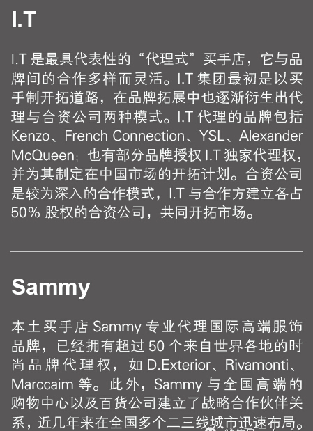源于不同的經營模式和發(fā)展階段,在中國買手店內占據主流的外資買手店在中國往往采用不同擴張策略,主要有: