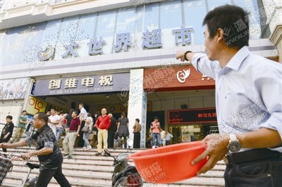 溫州市區(qū)西城路大世界超市停業(yè),部分商家昨在門口處理商品。蔣文廣攝