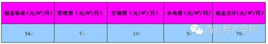 由于其余商業(yè)所調研租金皆包含管理費用,因此,按市場比較法測算數(shù)據,本項目租金水平為76元/月/㎡,含物業(yè)費,管理費,水電費,空調費。