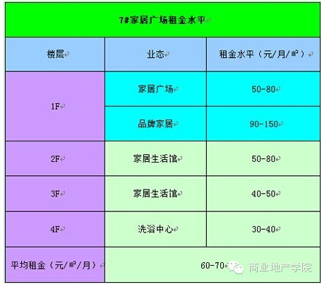 根據項目商業(yè)部分8000元/㎡的平均銷售標準,以8%的回報率測算,本項目租金標準應為: 8000×8%÷12≈54元/㎡/月