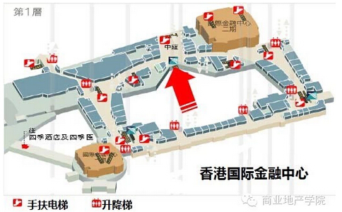 香港國(guó)際金融中心(下圖)垂直交通設(shè)置非常合理,手扶電梯12對(duì),約30-40米就設(shè)置一組電梯,極大的方便了顧客。