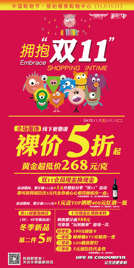 活動主題:雙11怎能等快遞,上麗柏銀泰,更快、更正、正優(yōu)惠