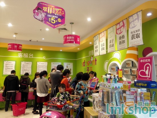 2014年11月11日,上午10:50,聯(lián)商網(wǎng)記者實(shí)地探訪杭州城西銀泰城孩子王kidswant,此時(shí)距離孩子王開(kāi)店已五十分鐘。以下是來(lái)自現(xiàn)場(chǎng)的圖片報(bào)道:
