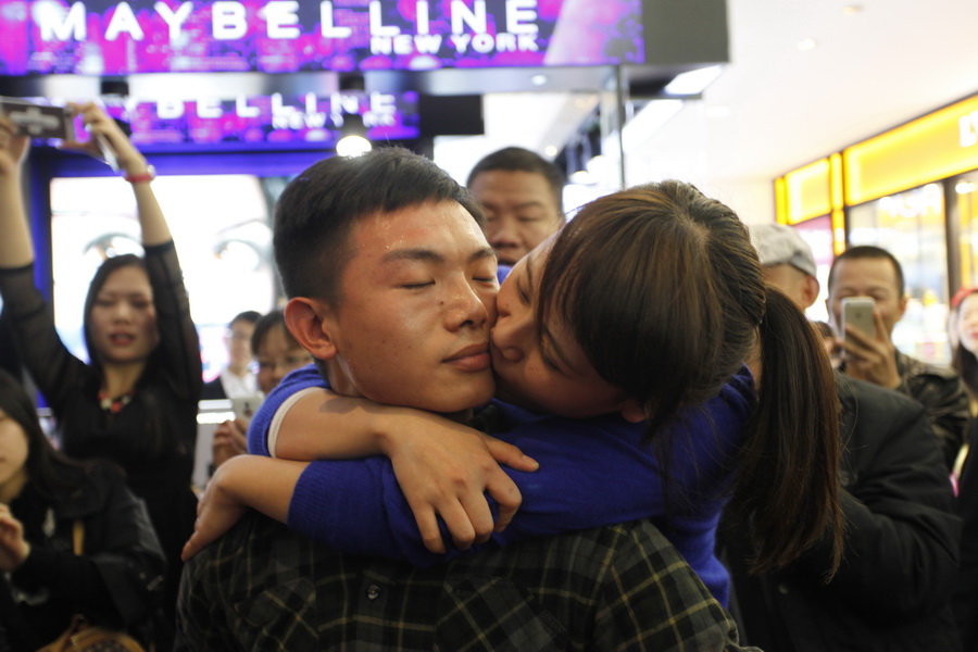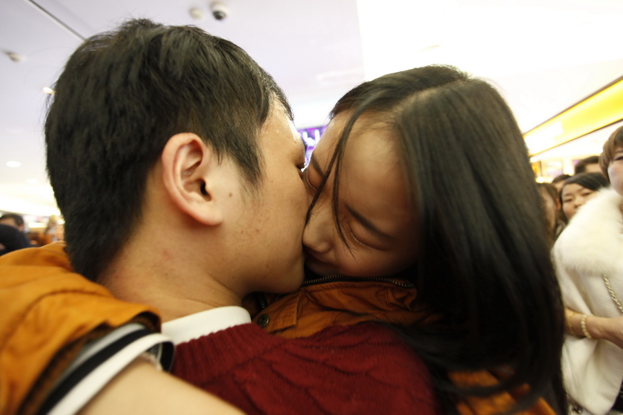 至少有5對(duì)選手親吻了2個(gè)小時(shí)以上,比賽進(jìn)行了3個(gè)半小時(shí)之后,仍由2對(duì)情侶不懈堅(jiān)持,進(jìn)行到3小時(shí)50分的時(shí)候,國(guó)貿(mào)決定追加1臺(tái)iphone6獎(jiǎng)勵(lì),由2組選手并列得冠。整場(chǎng)比賽持續(xù)了3小時(shí)58分。不少市民表示,實(shí)體店大力度的優(yōu)惠加上精彩紛呈的活動(dòng)比電商單純的打折促銷更有吸引力。