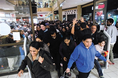 蜂擁而入 27日,美國新澤西州一處商店,大門開啟后,等待已久的顧客蜂擁而入。