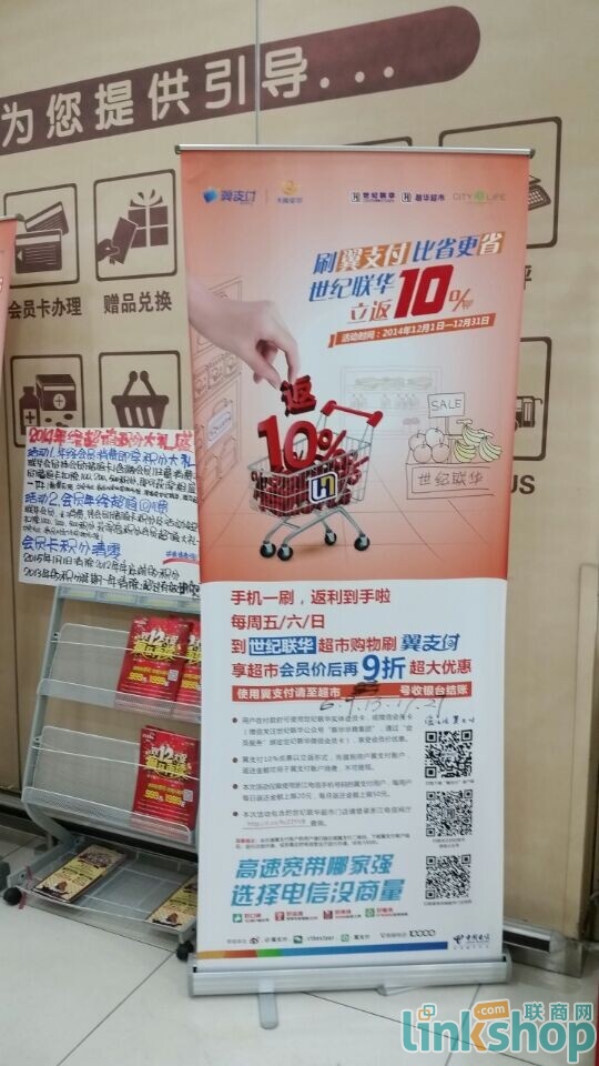 聯(lián)商網(wǎng)消息:今天(12月12日),淘寶“雙12”首次將戰(zhàn)火燒到線下,包括世紀(jì)聯(lián)華、物美、全家、萬(wàn)寧、85℃、海底撈、必勝客等在內(nèi)的多家大賣場(chǎng)、便利店及連鎖店,使用支付寶錢包付款即可享受全商品5折優(yōu)惠,最高上限為50元。