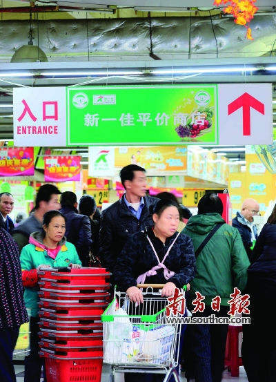 昨日,新一佳超市結業(yè)前一天,依舊是人流如織。王良玨 攝