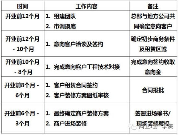 2)進(jìn)場后的核心工作:管控商家裝修節(jié)點(diǎn),建議粘貼商家工程進(jìn)度表。