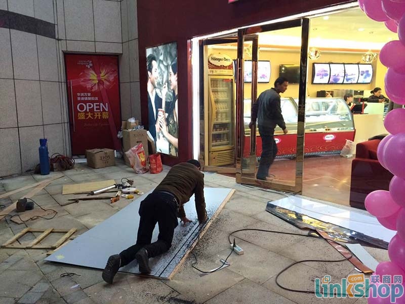 開(kāi)業(yè)前一晚的賣(mài)場(chǎng)內(nèi),工作人員正在對(duì)招牌燈箱做最后的檢查整理。