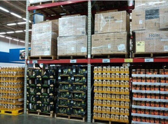 山姆會(huì)員店是倉(cāng)儲(chǔ)式賣(mài)場(chǎng),后倉(cāng)庫(kù)與賣(mài)場(chǎng)合二為一,將貨架分為三層,上兩層整齊的擺放復(fù)合包裝還未拆包的商品,最下層擺放的是拆包的獨(dú)立包裝商品。上兩層存貨,下層賣(mài)貨,這樣的設(shè)計(jì)看上去既整齊又壓縮了貨物所占的空間,減少庫(kù)存,節(jié)省費(fèi)用,更方便售貨員陳列商品,他們只需用叉車(chē)將復(fù)合包裝的貨物挑下放在底層地面上,拆除買(mǎi)包裝即可,多數(shù)是機(jī)械化作業(yè),很少人工搬運(yùn)。