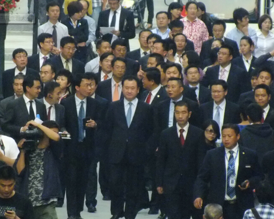 這次在港交所見到王健林,沒有看到他身后的黑衣人。