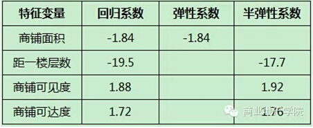 表4:商場特征對商鋪邊際價格的價格彈性/半彈性