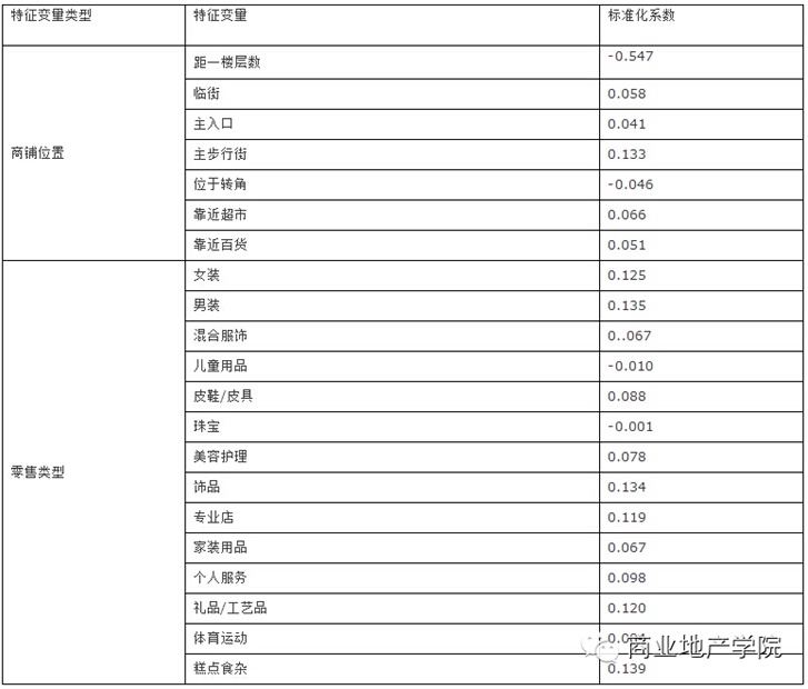 在所有決定商鋪租金邊際價格的特征變量中,區(qū)位特征的作用是顯著的。