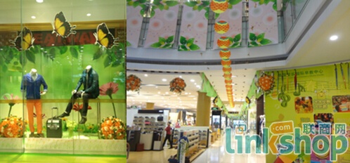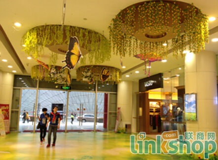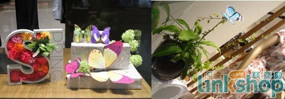 這是三月份“春色滿園”主題,不論是大堂、中庭、通道還是柜臺,到處看到鳥語花香、蝴蝶飛舞的場景,給顧客帶來新的視覺享受,感受到春的魅力。