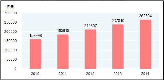 2010-2014年社會(huì)消費(fèi)品零售總額