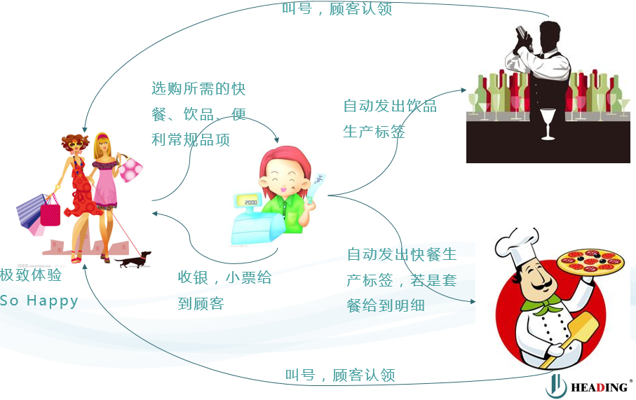 海鼎綜合以上分析,通過“模型定義+場景模擬+硬件考量”獨創(chuàng)了新銷售單打印“一POS多點按需打印”方案。該方案可以提升顧客的購物體驗:顧客在便利店內(nèi)選購常規(guī)的品項,在收銀臺買單的時候點自己中意的快餐和飲品,收銀員根據(jù)顧客所需在POS機上錄入顧客的交易明細(xì),整單結(jié)算,POS機打印出顧客整單商品交易清單,在飲品區(qū)會自動打印出顧客選購的可黏貼飲品標(biāo)簽,在后廚會自動打印出顧客選購的快餐標(biāo)簽,如果顧客選購的是套餐,小票會打印到套餐的明細(xì)品項,便于后廚生產(chǎn)。飲品區(qū)生產(chǎn)完畢,根據(jù)飲品杯子上黏貼的飲品標(biāo)簽上的號叫號,顧客憑整單小票取即可。快餐區(qū)生產(chǎn)完畢,配餐員根據(jù)標(biāo)簽上的號叫號,顧客憑整單小票取即可。如此的購物場景下,對顧客來講“顧客手頭的小票還是一張,且和實際付款金額一致”,對門店員工來講“不同工種的人員獲取不同的生產(chǎn)信息”,雙方都能獲得極致體驗。