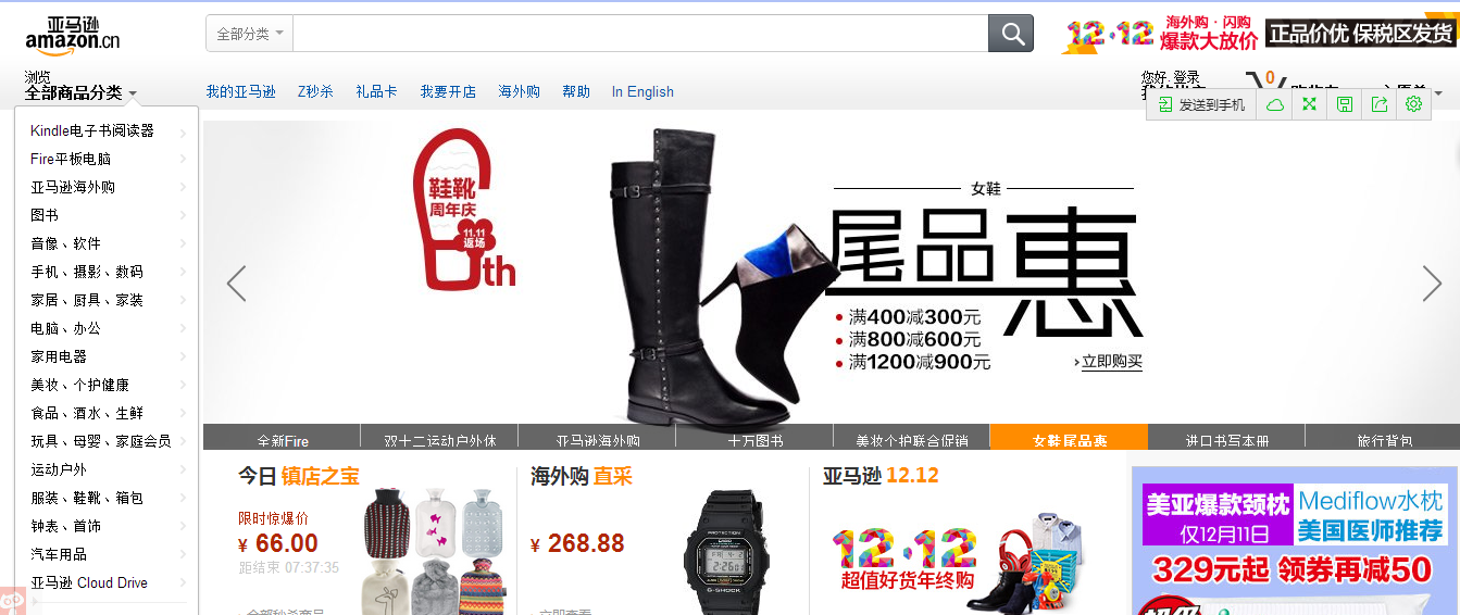 圖片說明:亞馬遜的首頁推出了海外購的專欄。