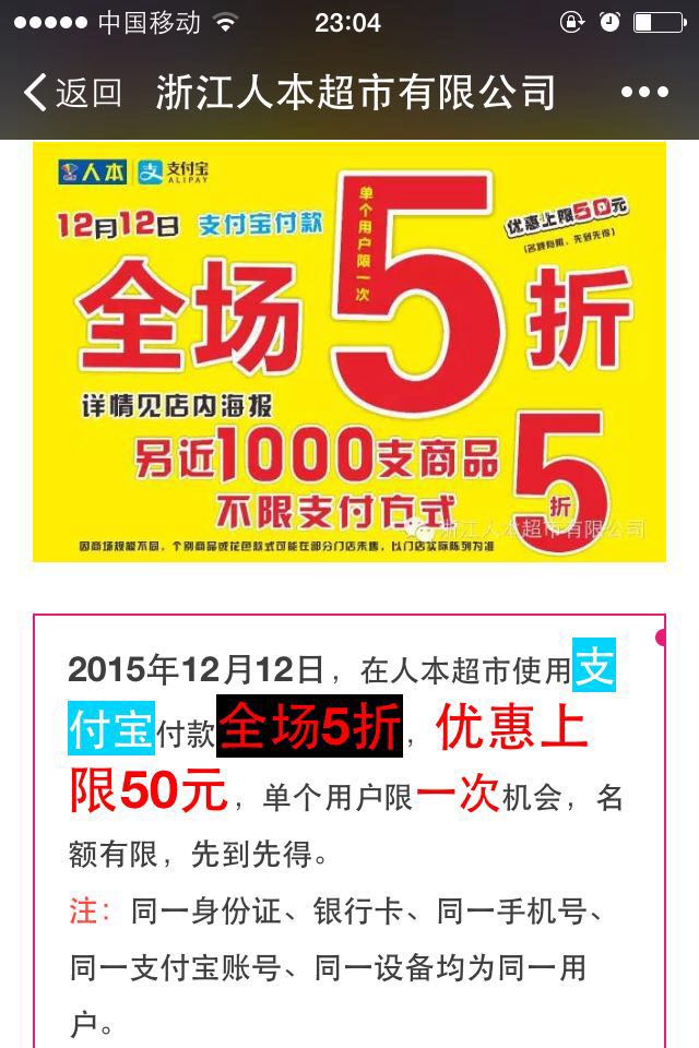 但這樣卻也讓靖安懷疑,超市的希望在此次活動中獲取什么?銷量還是銷售額呢?當然有支付寶的參與,這是否意味著是商超在為支付寶鋪路?那么商超這次活動很顯然對于電商就不存在任何的阻擊。提升支付的便捷性,其潛在的損失就是再次喚醒消費者使用網(wǎng)購的神經(jīng)。