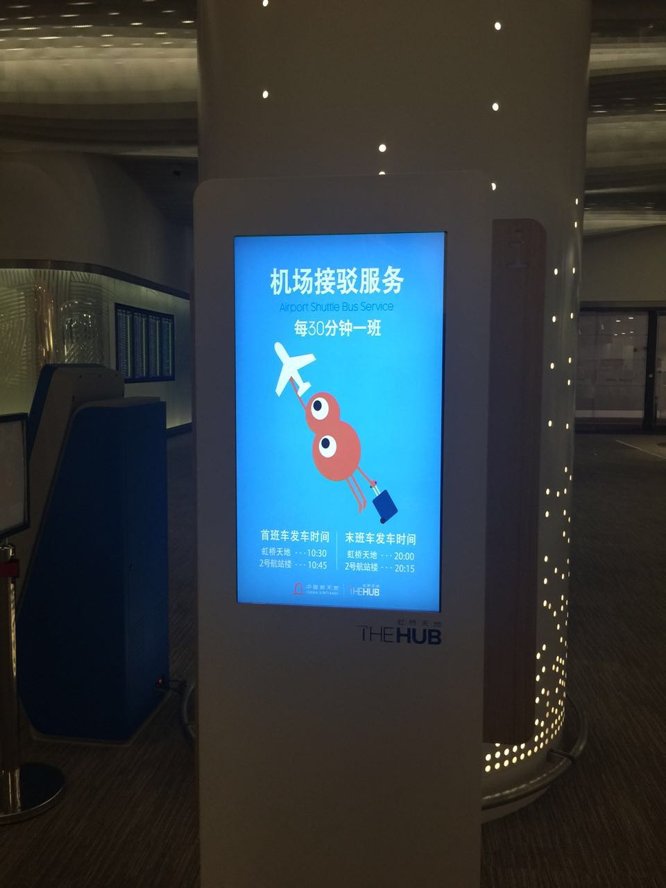 商場一樓有近1000平方米作為遠程值機大廳,實時地顯示高鐵和航班信息,還提供每半小時一班的班車。筆者觀察到,目前合作對象僅有東方航空。設(shè)施雖然齊全,但是尚未開始運營。同時,在之前報道中,虹橋天地計劃服務(wù)將基本覆蓋所有國內(nèi)航班。