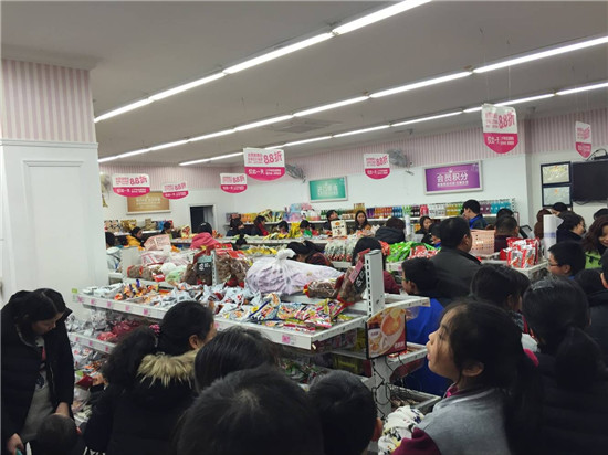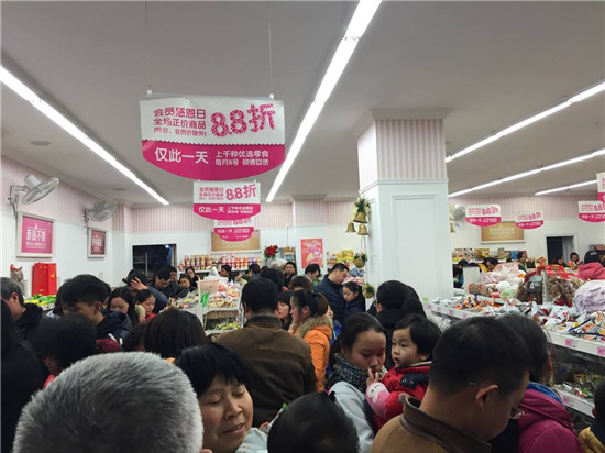 店的兩端都設(shè)置了收銀臺,基本上每一個收銀臺前都排起了長長的隊伍,久久沒有動彈的跡象。如果不熟悉這個店,恐怕會誤以為這是開業(yè)或者是店的周年慶典,亦或是春節(jié)的大購物促銷。然而,這僅僅是該店的一個會員日而已!