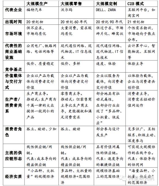 阿里研究院長(zhǎng)期關(guān)注C2B模式,在此領(lǐng)域已經(jīng)發(fā)布了若干成果,下表即是一個(gè)簡(jiǎn)要的概括和梳理。