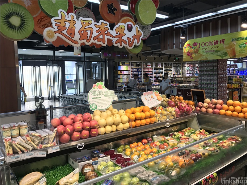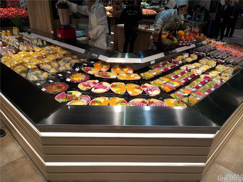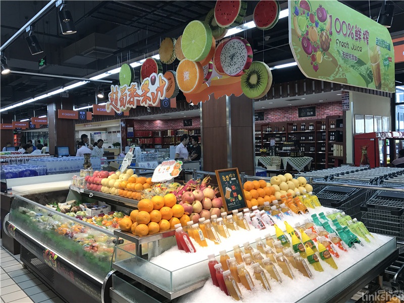 ▲在貴州合力集團(tuán)6月底開業(yè)的惠民生鮮超市南浦路店,同樣在超市的入口位置,設(shè)置了水果現(xiàn)場(chǎng)加工環(huán)島。加工環(huán)島的設(shè)置可以更好的服務(wù)顧客,消費(fèi)者即便不需要但滿足“所見即所得”消費(fèi)心理需求,現(xiàn)場(chǎng)加工的新鮮感更不必說。