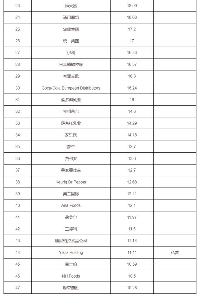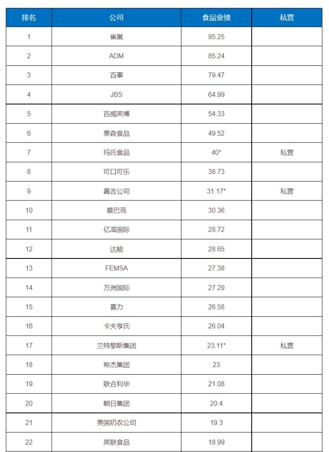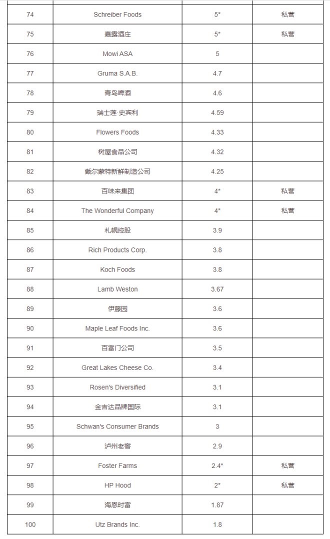 一些公司標(biāo)有星號(hào),表示發(fā)生以下情況之一的估計(jì)值:食品業(yè)務(wù)無(wú)法與其他細(xì)分業(yè)務(wù)區(qū)分;私營(yíng)企業(yè),新聞來(lái)源報(bào)道了數(shù)據(jù),而不是公司直接報(bào)道;找不到新信息,以2020年收入計(jì)算。